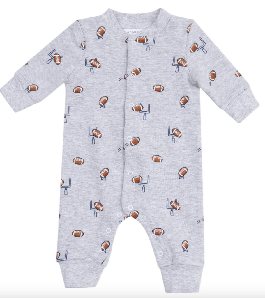 French Terry Sport Football Field Goal Baseball Collar Romper with Front Placket