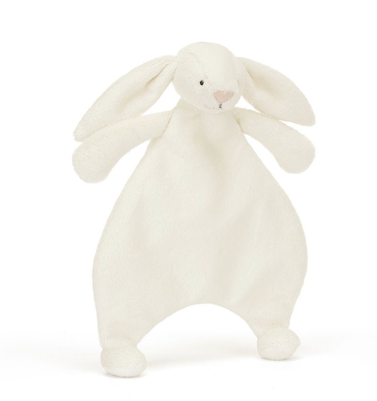 With irresistibly soft fur, the Bashful Bunny Comforter features Bashful Bunny's signature long lop ears, pink suedette nose and embroidered eyes.