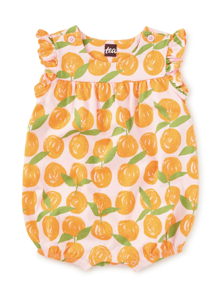 Sweet details meet everyday ease. This flutter-sleeve romper features an artist-designed print that adds charm to a one-and-done outfit made for tiny adventures. Thoughtfully designed for comfort and convenience, it's crafted from soft 100% cotton jersey with snaps at the inseam for easy diaper changes and elastic leg openings for a gentle, flexible fit. Made to be worn often, washed well, and passed along when the time comes.