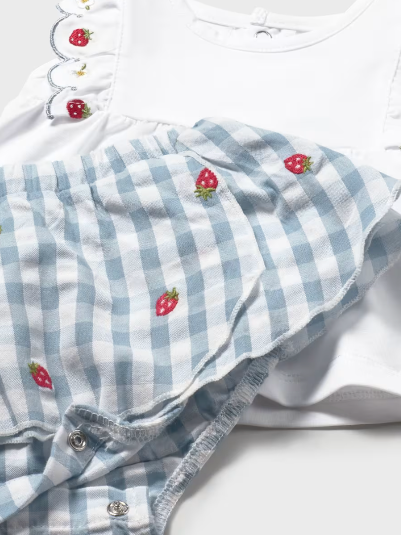 Gingham Skirt with Embroidered Top Set