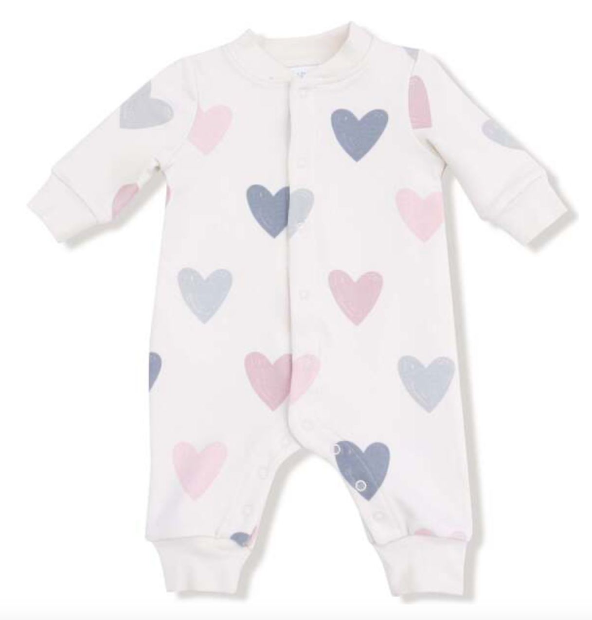 Hearts French Terry Baseball Collar Romper with Front Placket