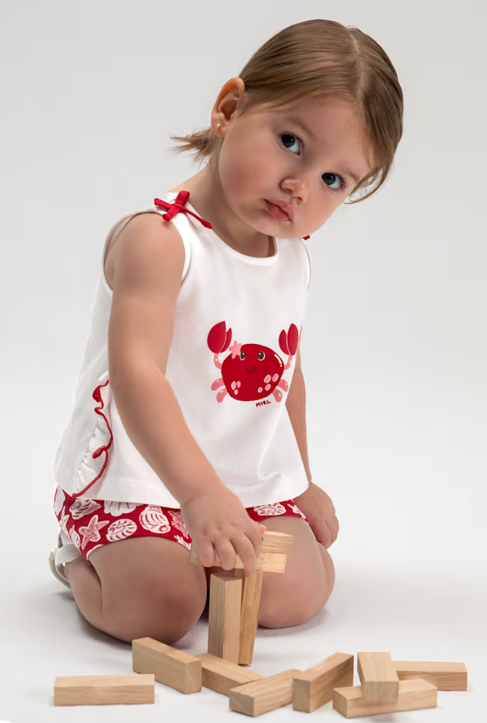 Red and White Crab Short Set