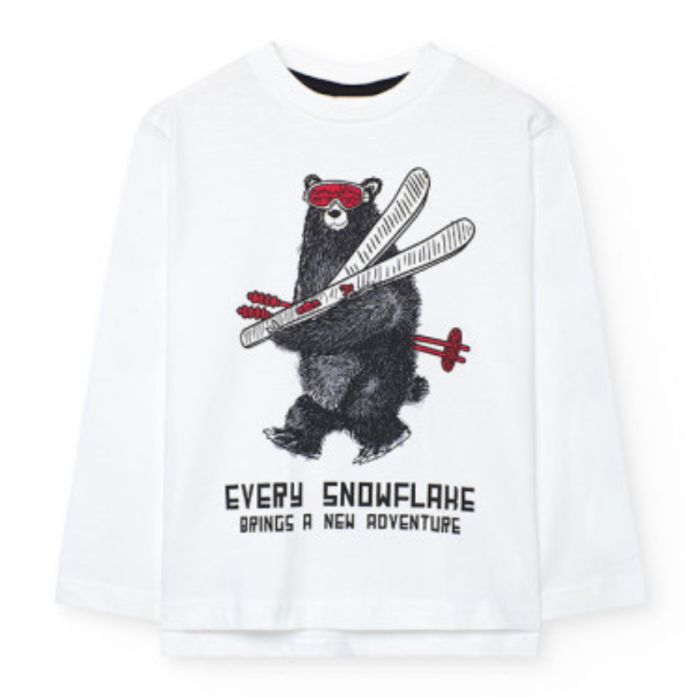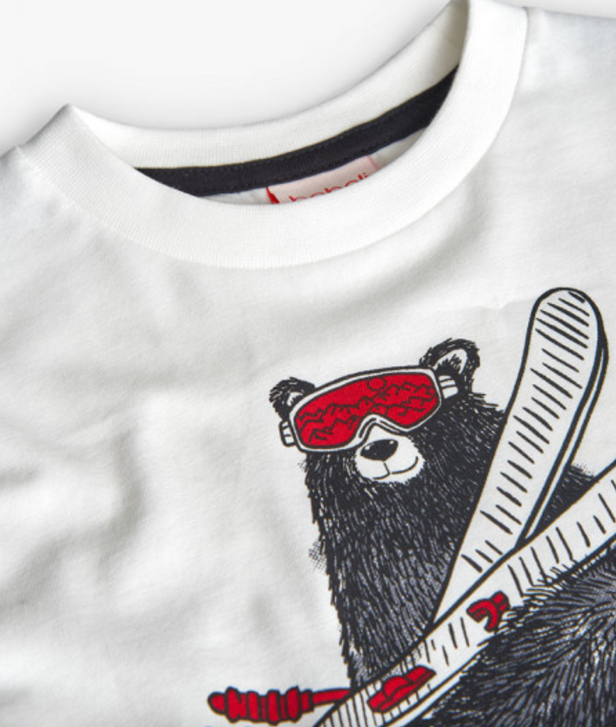 Off White Shirt with Bear and Skis