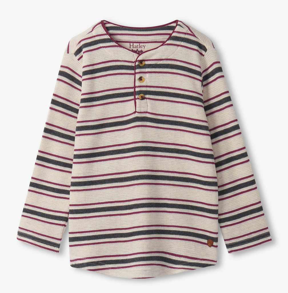 Oatmeal Melange Stripes Waffle Henley