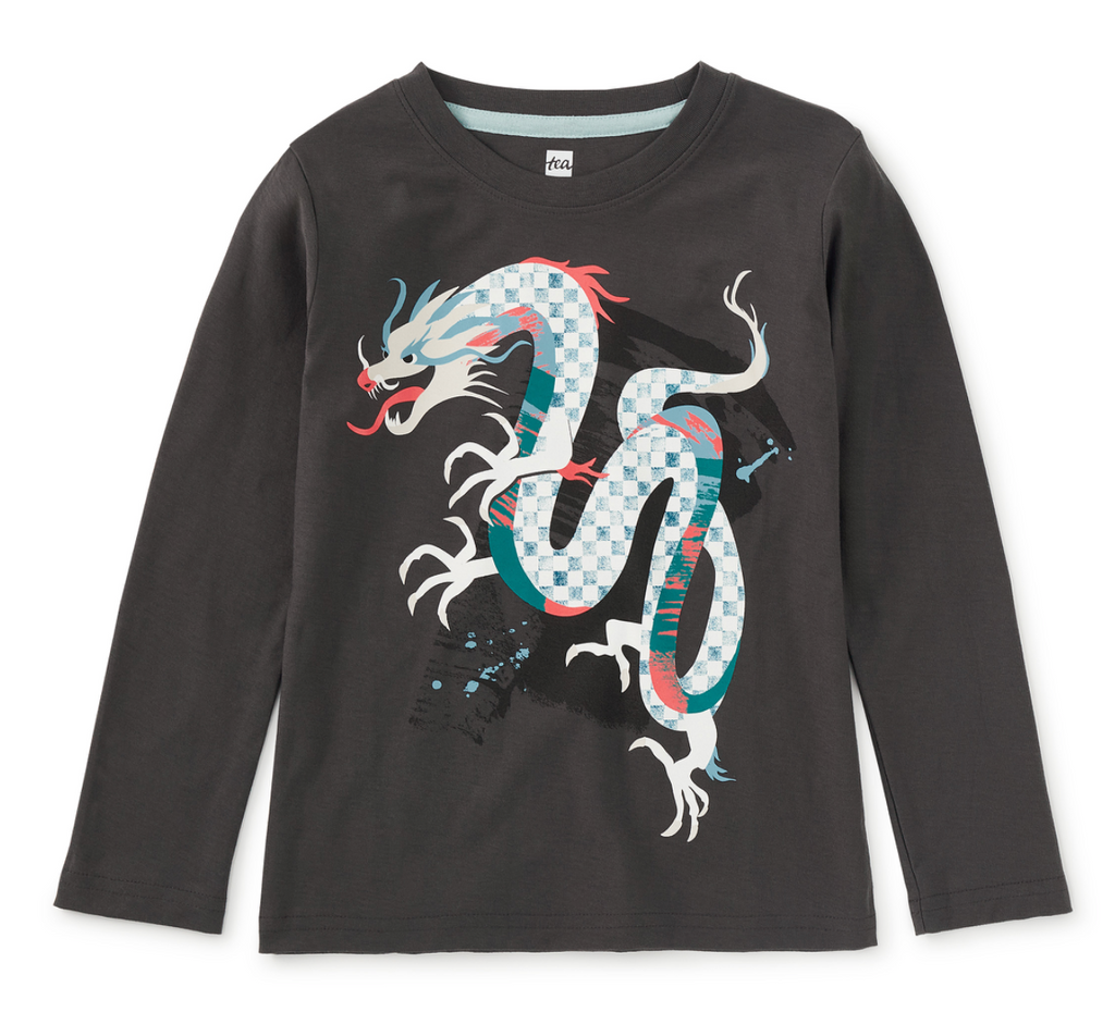 Unleash legendary style with this powerful long sleeve tee, featuring a dynamic dragon graphic inspired by East Asian mythology and bold streetwear vibes. The dragon's stylized checkerboard scales and electric color palette give it an eye-catching, modern twist. Made from 100% soft cotton jersey for all-day comfort and serious cool factor. A fierce, fashion-forward layer for school days, weekend play, or wherever the adventure leads.