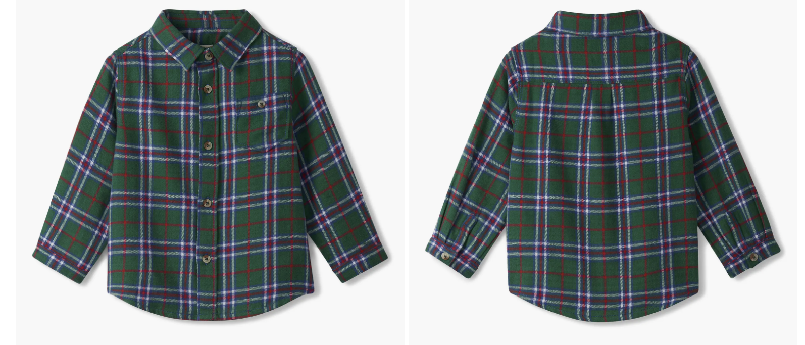 Brushed cotton flannel will feel great next to your little one's skin in this button-up shirt rendered in a festive plaid.