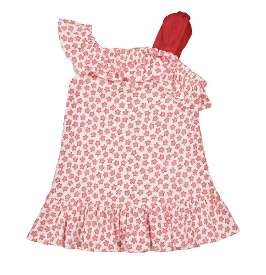 Red and White Printed Crinkled Knit Dress