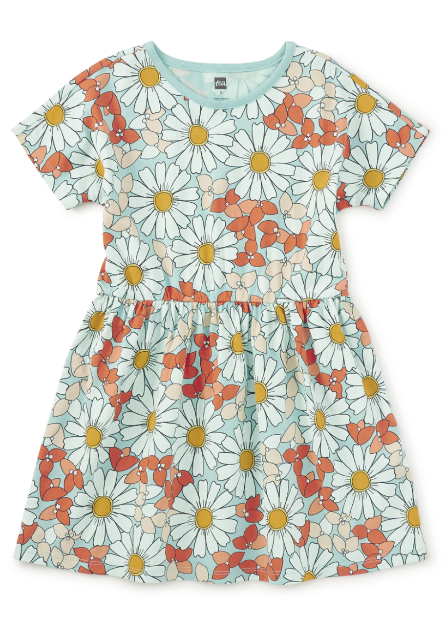 An easy favorite made for movement, this twirl dress brings together cheerful color and everyday comfort. The soft cotton jersey feels gentle against the skin, while the elastic waist and swingy skirt invite spins, skips, and spontaneous dance breaks. A classic crew neckline and short sleeves keep the fit simple and versatile for warm days. It pairs perfectly with leggings or Somersault Shorts for extra coverage and carefree all-day wear.