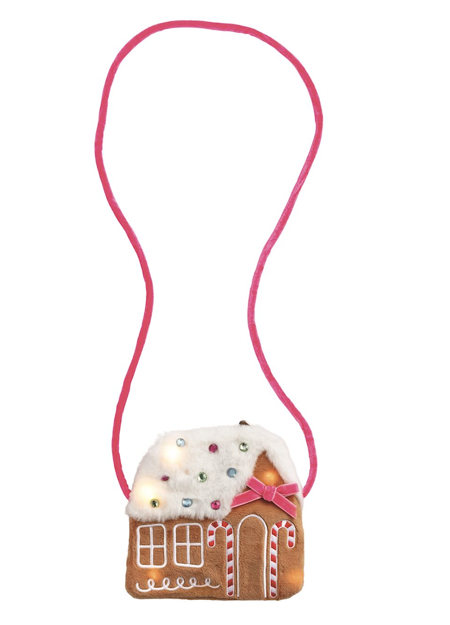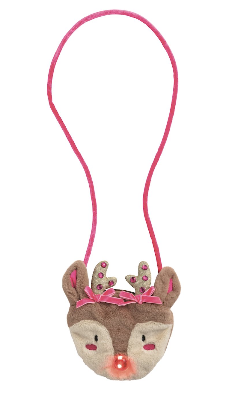 Minky and faux fur purse features LED lights and velvet strap. Battery included. Ages 3+.