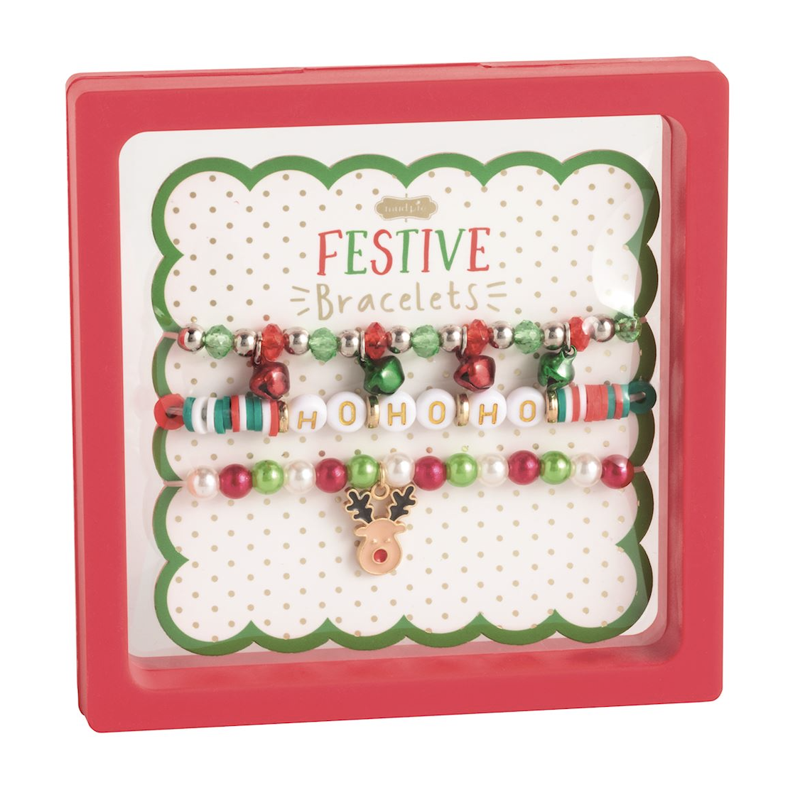 Description: Set of three bead stretch bracelets come in colorful gift-ready packaging.