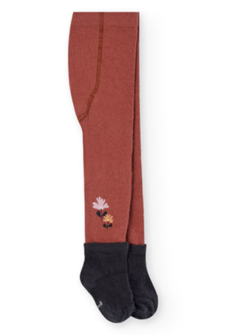 Rust Tights with Flowers