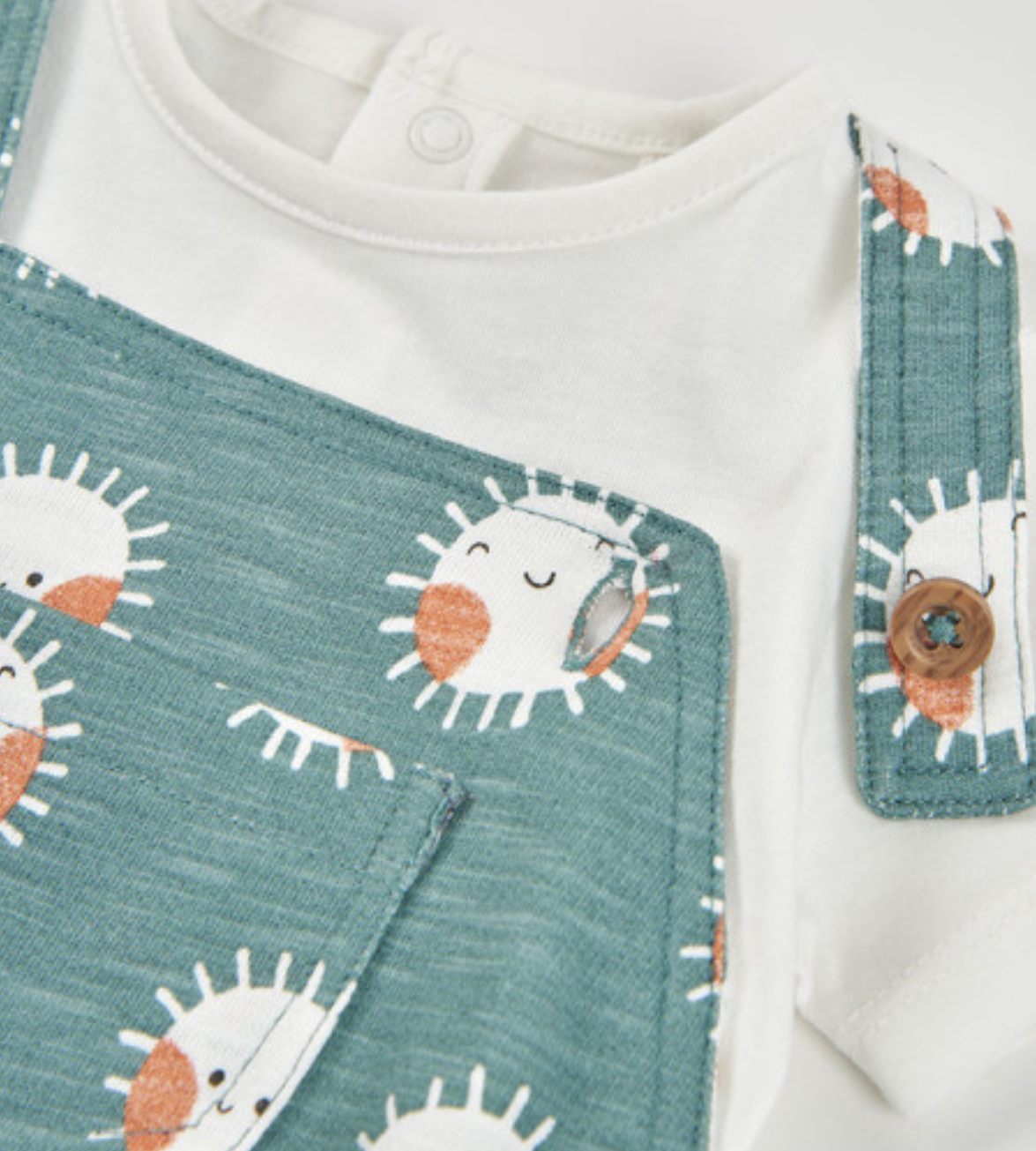 Baby Boy White Bodysuit with Sage Romper with Suns
