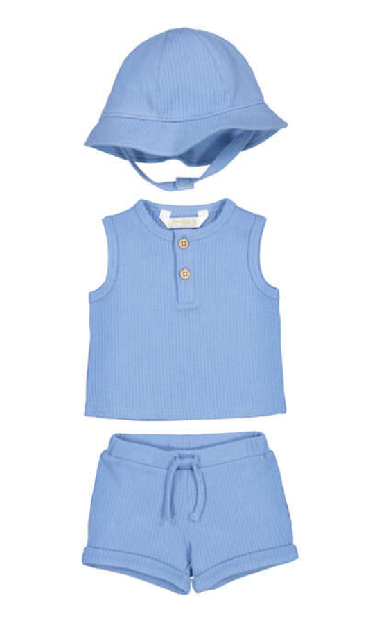 Blue Shirt with Shorts and Hat Set