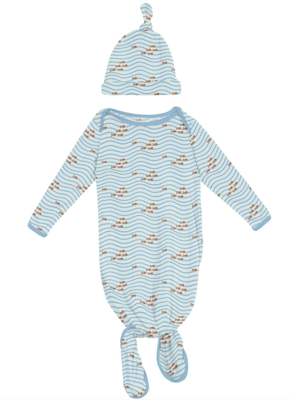 Fresh Air Little Fishy Knotted Layette Gown & Hat Set One Size