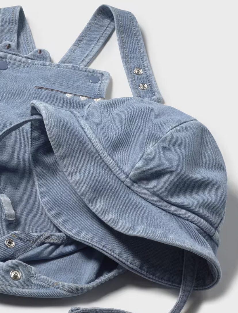 Light Denim Short Romper with Hat