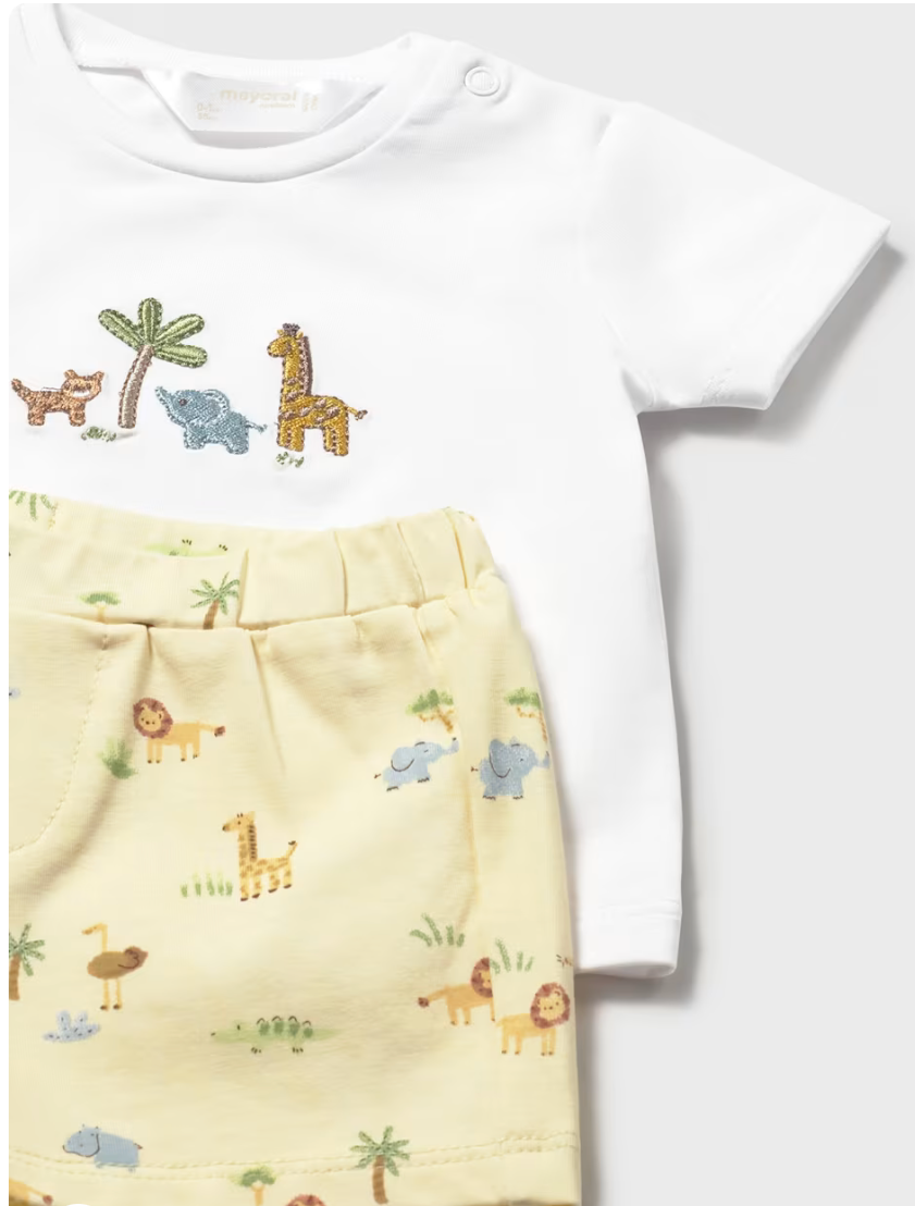 White Jungle Shirt with Yellow Jungle Animal Shorts