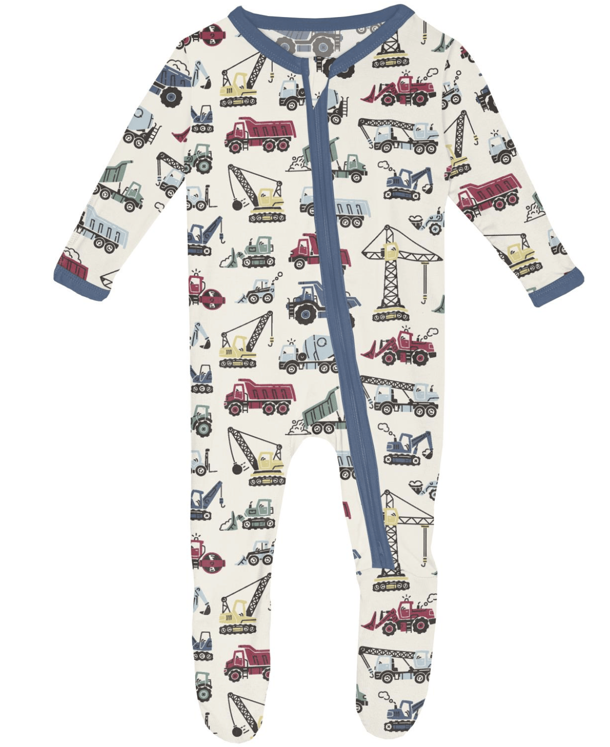 Natural Construction Trucks Footie with 2 Way Zipper