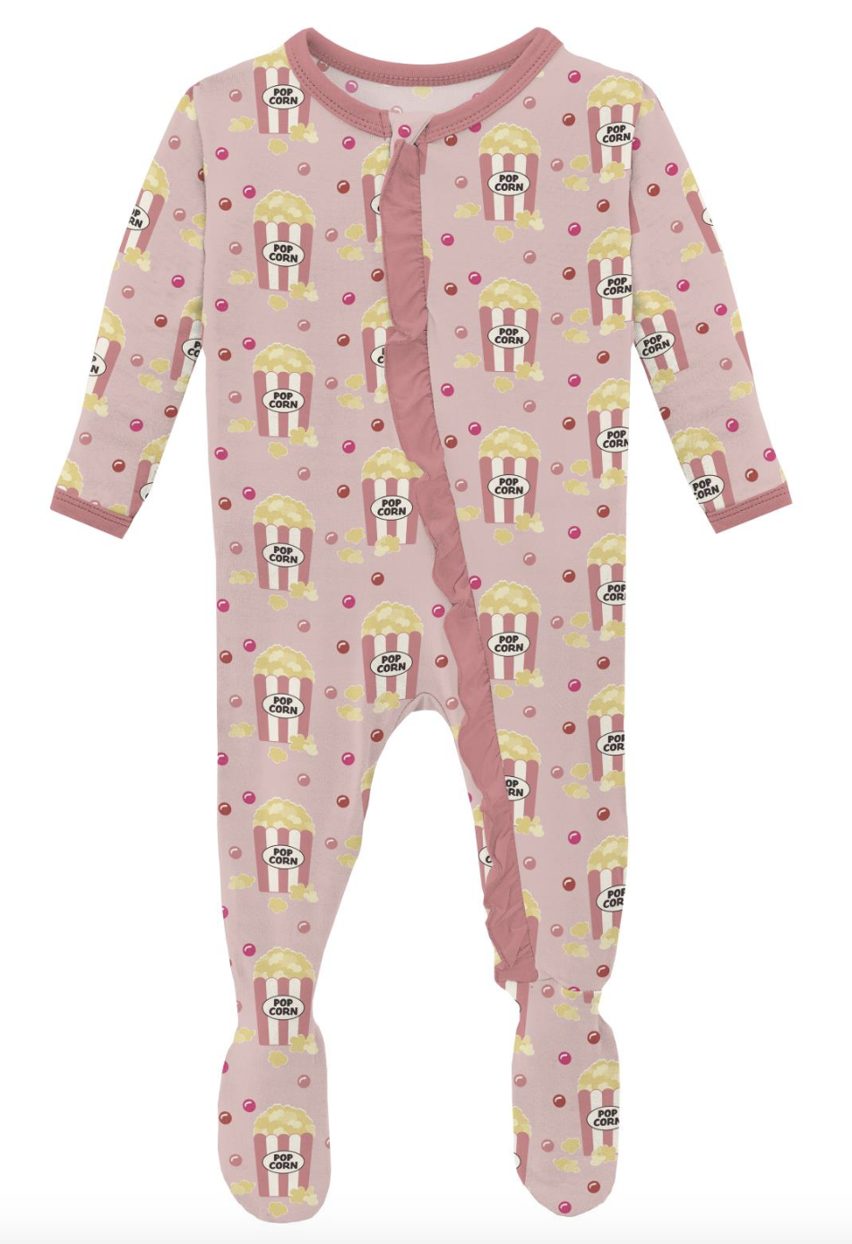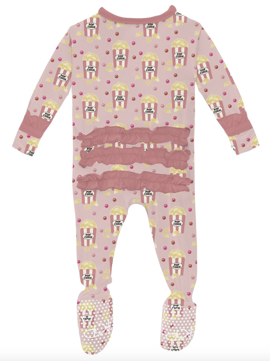 We took cuteness up a notch! Our traditional footie, with flip paws to cover chilly hands and prevent scratching, fleece on the inside feet, and no-slip grips on the outside feet, now has sweet ruffles along the front zipper and rear snaps. Perfect for your little princess!