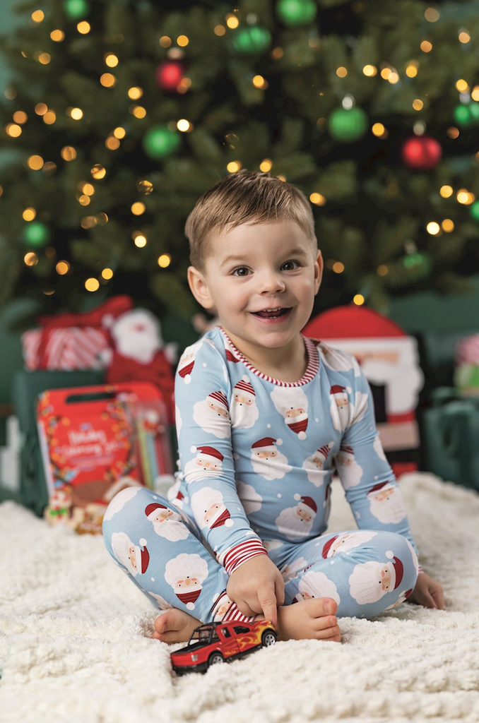 Description: 2-piece set. Knit bamboo long pajamas with glow-in-the-dark print.