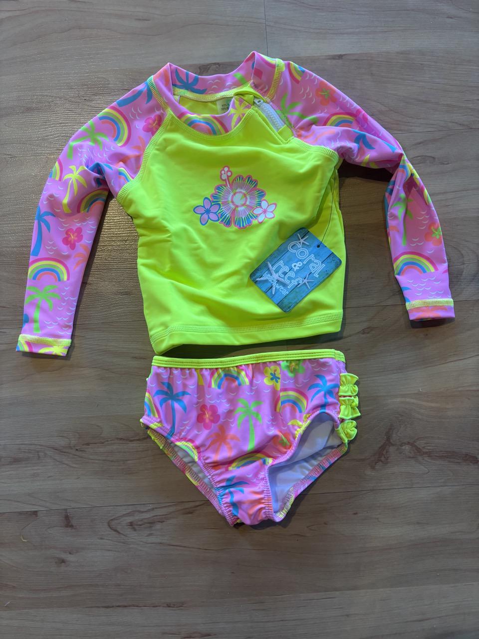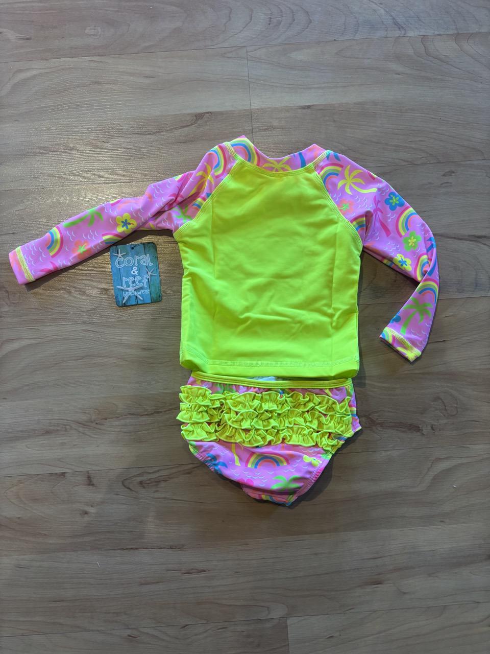 Elsa 2PC Bathing Suit Set Rainbow Palm Pink/Neon Yellow