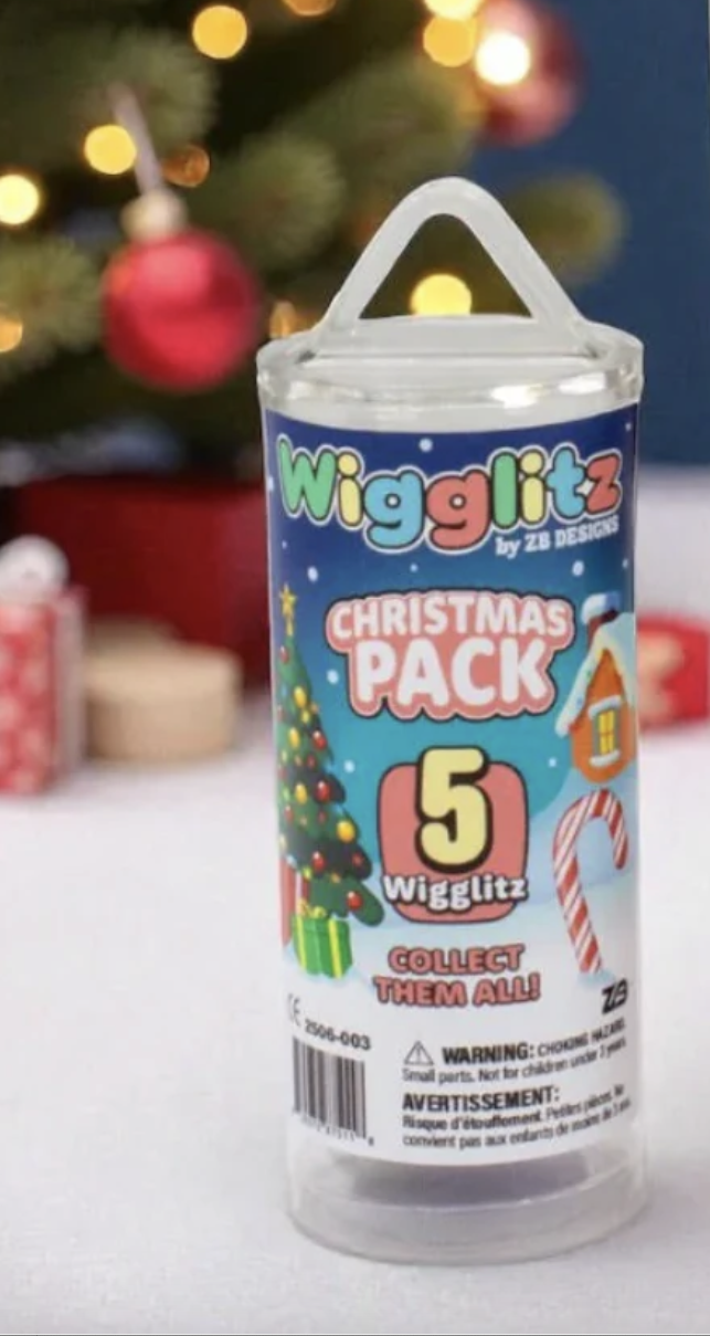 Tube includes 5 randomly selected Christmas theme Wigglitz. Perfect for a stocking stuffer or gift topper!