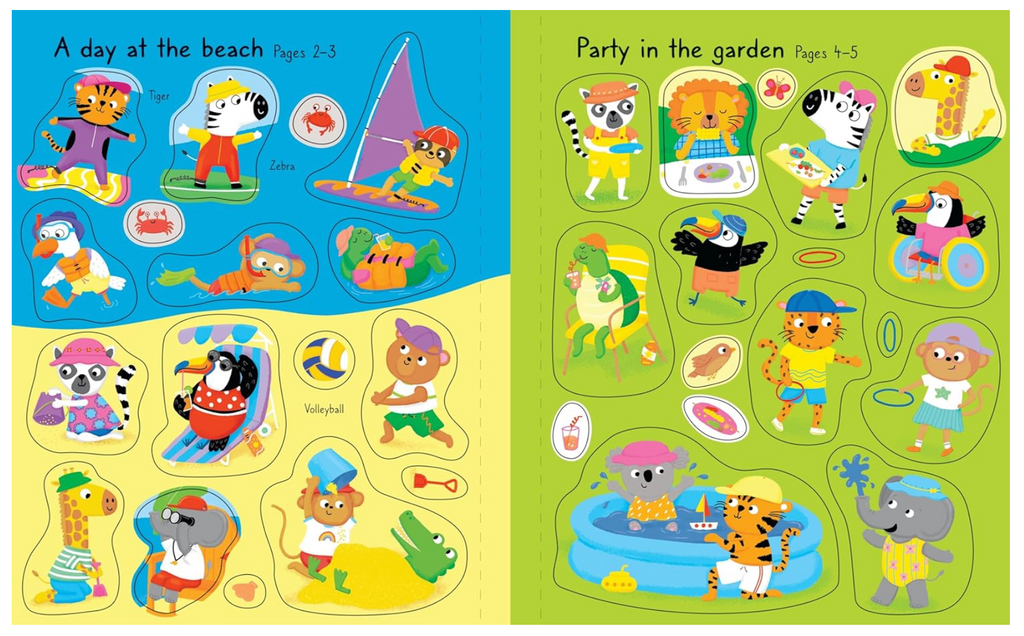 Join a group of cute animal friendsas they make the most ofthe summer sunshine, frombuilding sandcastles on the beachto camping under starry skies, and much more. Children will love adding over 150 stickers to the summery scenes, including playtime at the park, festival fun, boating on the lake and splashing in the sea. Perfect for keeping kids entertained during long summer days and journeys.