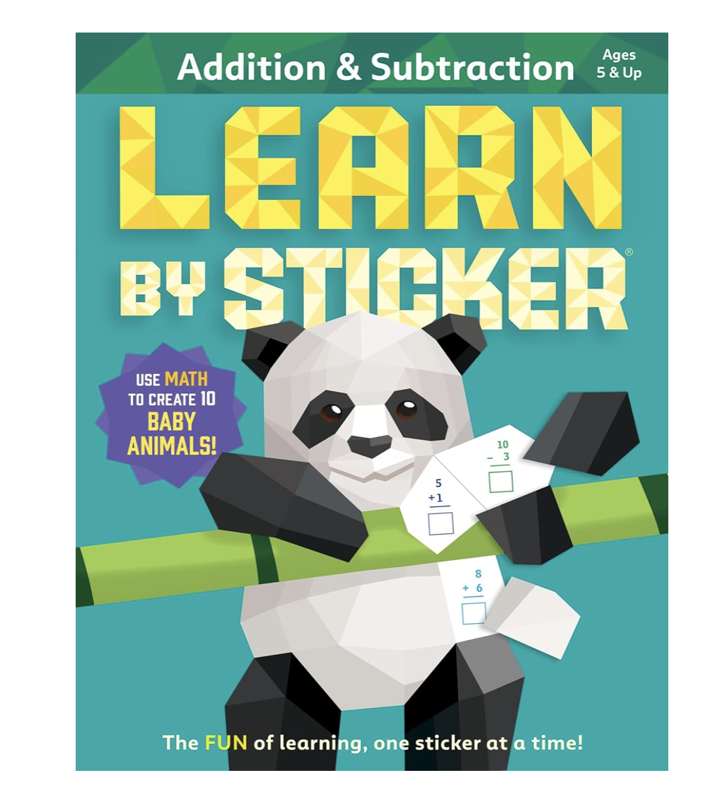 In Learn by Sticker: Addition and Subtraction, solve first grade-level addition and subtraction problems and use the answers to determine where to place each sticker to create ten sticker images of beautiful baby animals. Plus, the back of each sticker page contains fun, critical thinking-based math activities like solving riddles, decoding secret messages, and more.