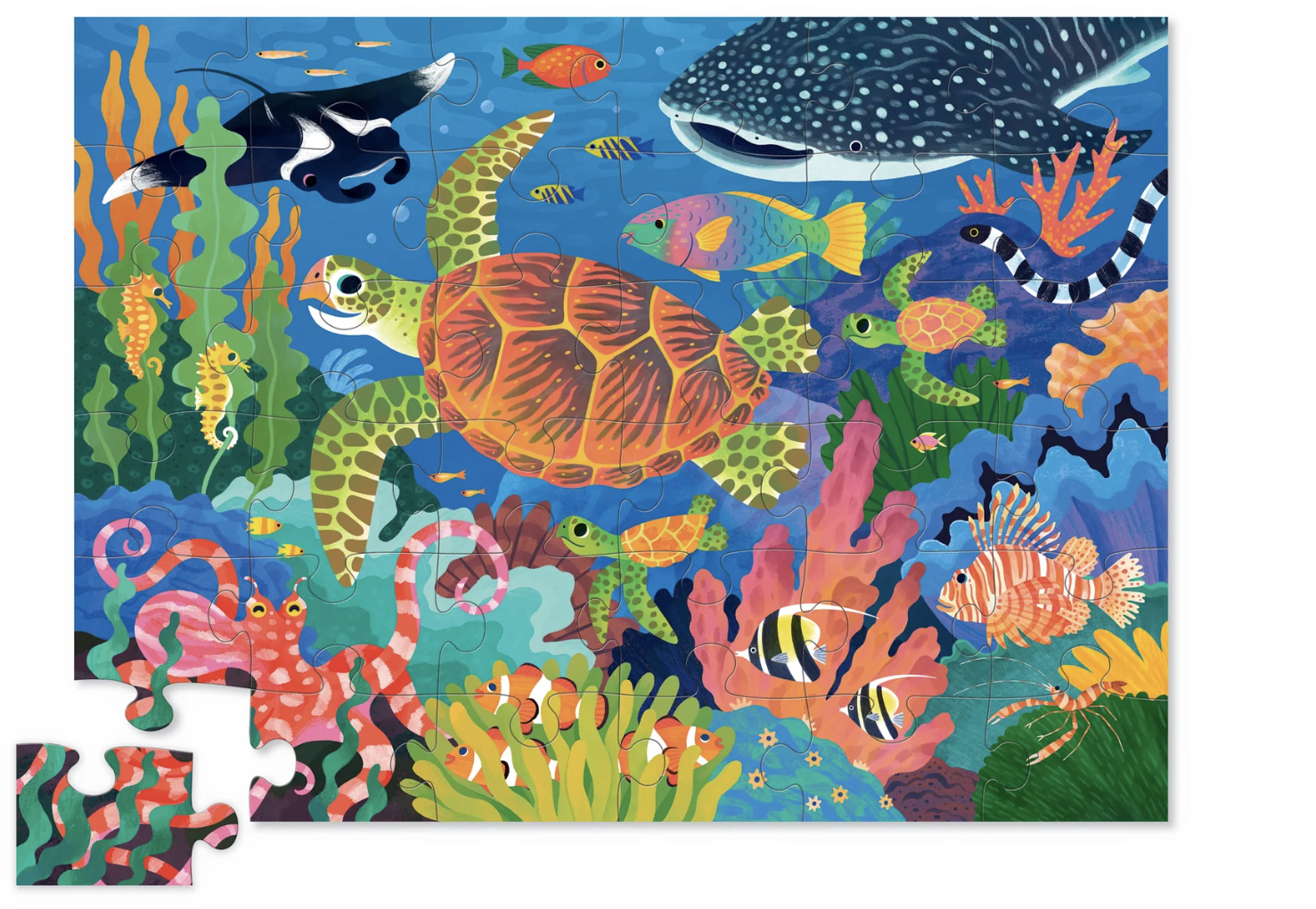 Detailed, colorful, and whimsically illustrated, these best-selling floor puzzles are perfect for all ages. Its beautiful designs will engage imaginations while the fun of the challenge helps encourage problem-solving. All Crocodile Creek puzzles are printed with soy-based ink on recycled cardboard. Uniquely shaped storage box is study and will keep all the pieces together when the puzzle is not in use.