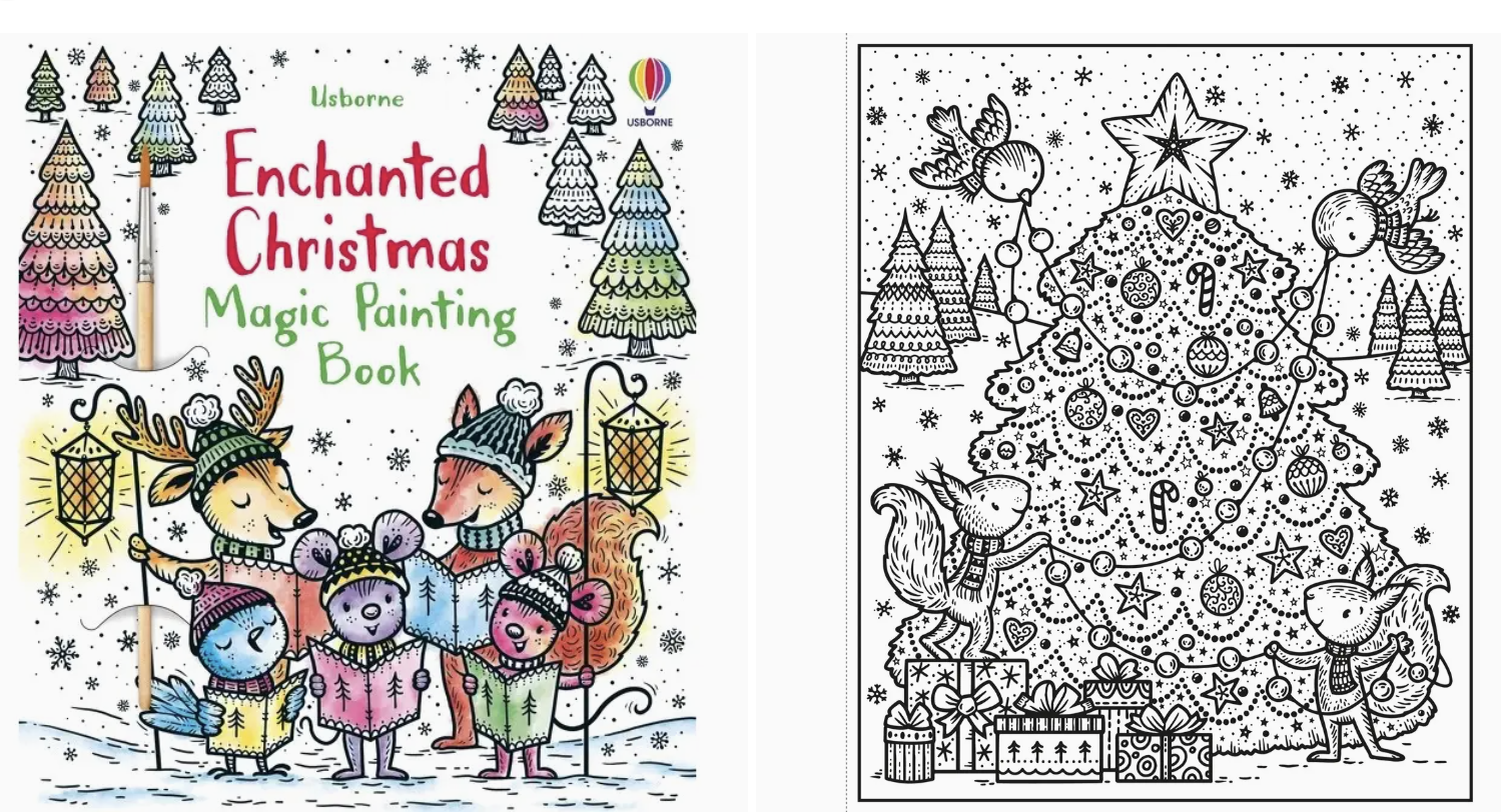 Bring the magic of Christmas to life in this interactive activity book, perfect for the holiday season. Brush water over the beautiful black and white illustrations and watch the magical festive scenes burst into colorful life, from a night-time sleigh ride to an enchanted gingerbread house. Part of Usborne's bestselling Magic Painting series - over 25 titles available!