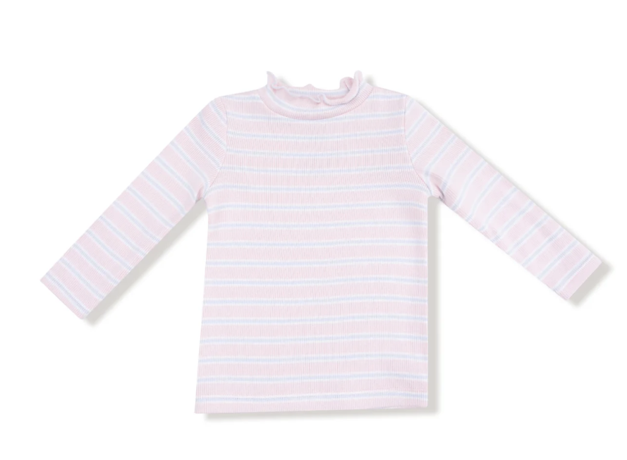 Ribbon Bow Trellis Ruffle Romper Pink and White