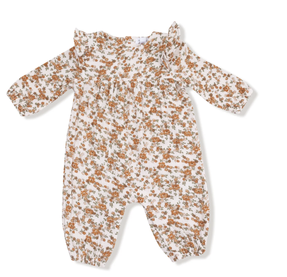 Floral & Butterfly Bouquet Ruffle Shoulder Baby Romper