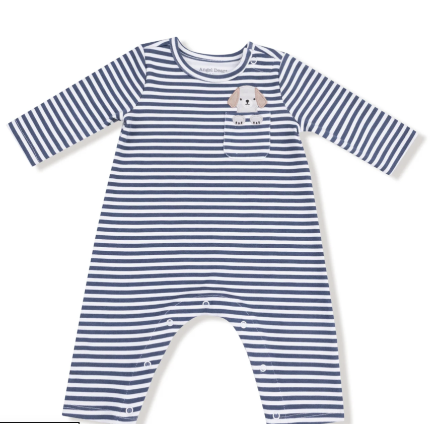Stripes with Puppy Detailing Organic Cotton Jersey Romper