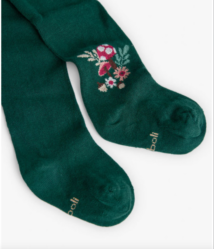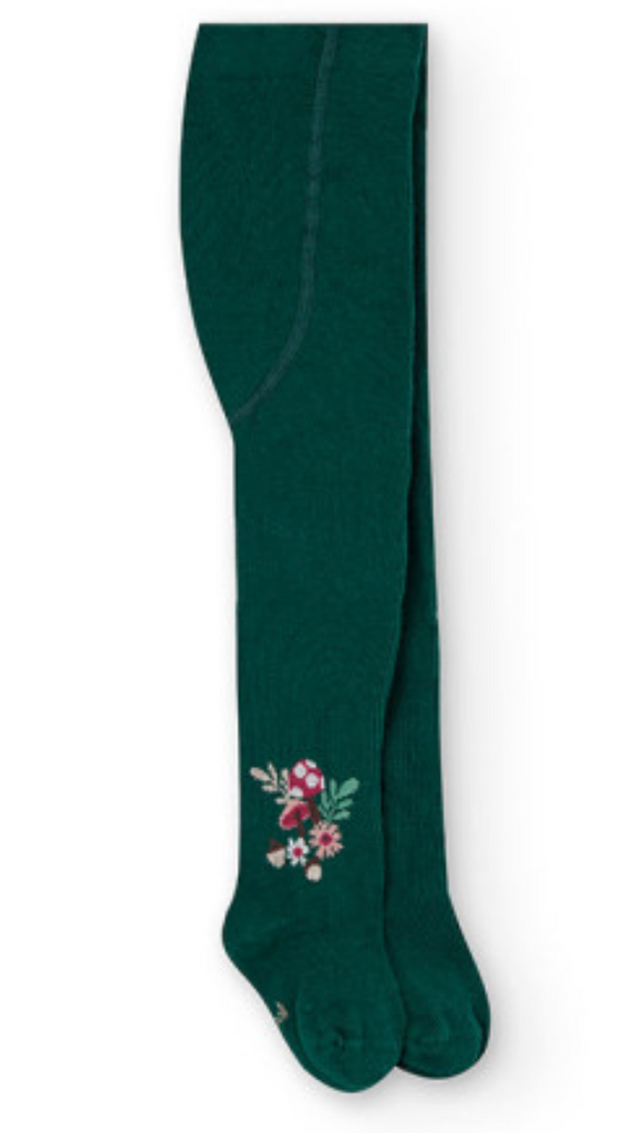 Forest Green Tights with Flowers on Ankle