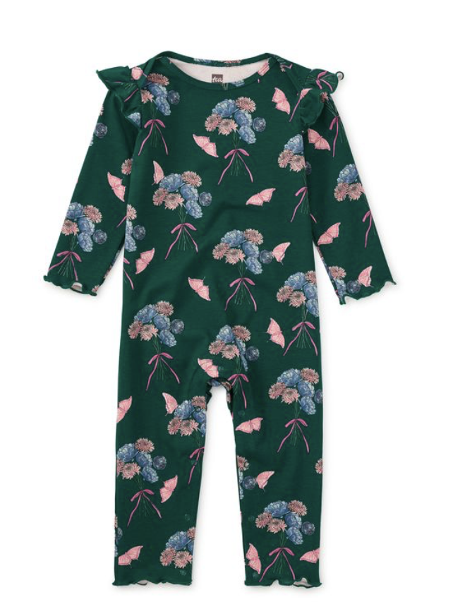 Floral & Butterfly Bouquet Ruffle Shoulder Baby Romper
