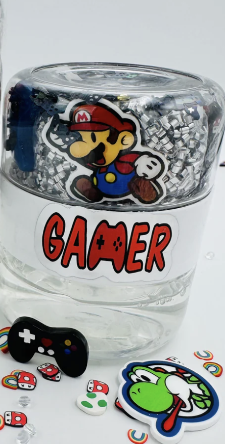 Introducing Gamer Slime, the perfect kit for video gamers of all ages! Enjoy creating clear slime mixed with vibrant primary colors and add in cute character charms for a personalized touch. Unleash your creativity and level up your slime game!