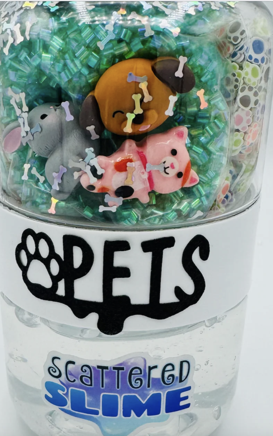 Discover the Pets Slime Kit, crafted for kids who love animals. This kit features clear slime plus a delightful assortment of animal-themed charms and colorful confetti. Ideal for pet lovers, it combines creativity with a love for animals, providing hours of sensory fun and relaxation. Cats, dogs and bunnies are waiting for you to buy this kit.